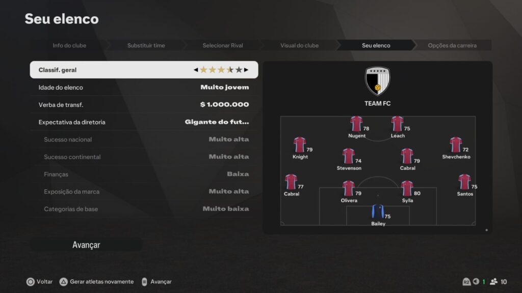 Além disso, é possível definir a verba de transferências inicial, o que determina a capacidade de contratar novos jogadores e fortalecer a equipe. Ajustar o orçamento do clube pode influenciar bastante as estratégias de mercado e a gestão financeira, especialmente para clubes de ligas menos favorecidas.