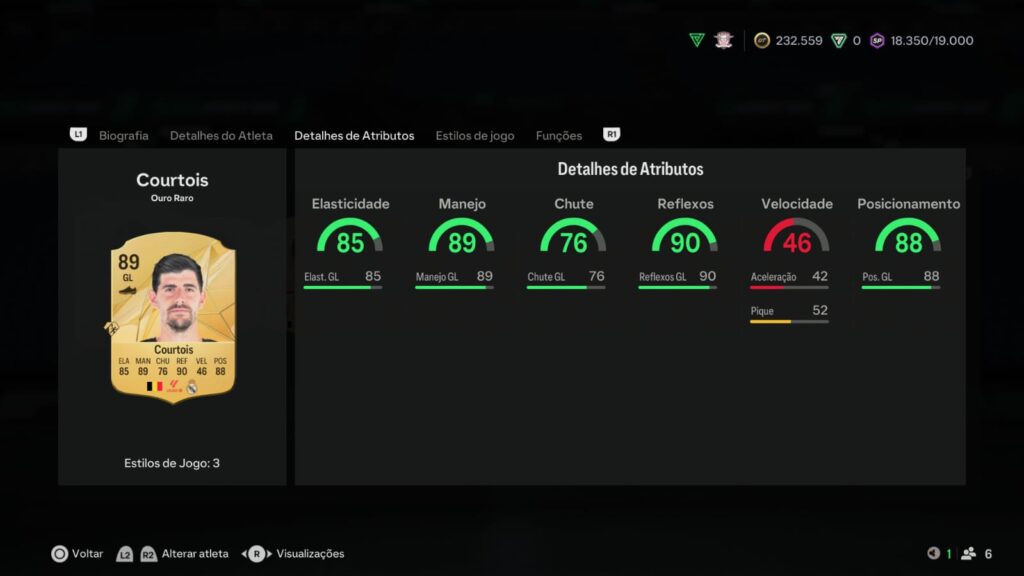 Courtois tem uma combinação poderosa de atributos, o que o torna ideal para lidar com ataques de longa distância, bolas cruzadas e situações de um contra um. Sua altura também contribui para sua presença no gol, dificultando a vida dos atacantes adversários.