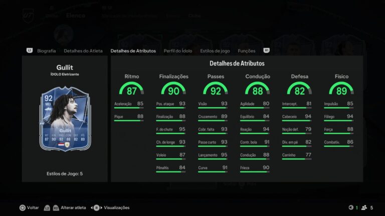 Gullit possui 5 playstyles, incluindo a playstyle+ Físico, em que dá saltos mais altos e tem mais presença física aérea.