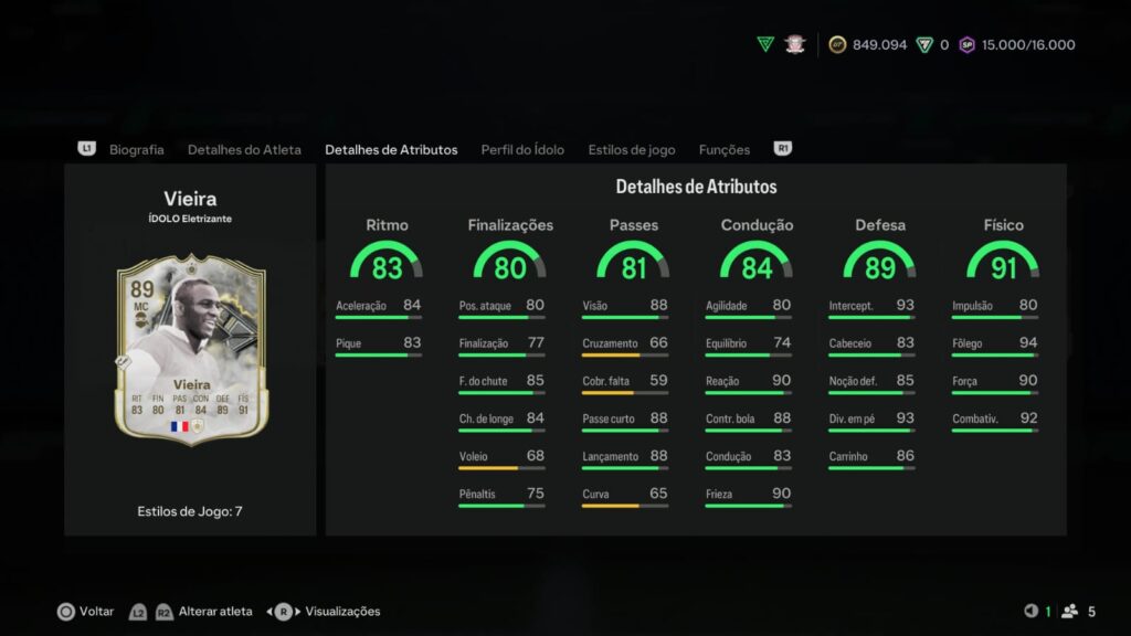 Além disso, possui 7 playstyles, incluindo a playstyle+ Interceptação, onde tem alcance ainda maior e mais chances de ficar com a bola ao executar interceptações.