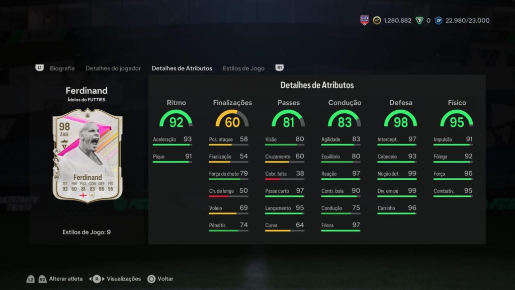 Isto é, seu Ritmo, Finalização, Condução e Físico estão impecáveis.