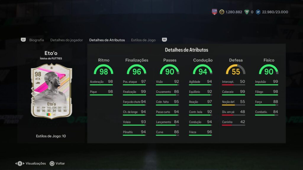 Isso porque além dessa versão do FUTTIES, Eto’o tinha somente sua versão Ídolo Base.