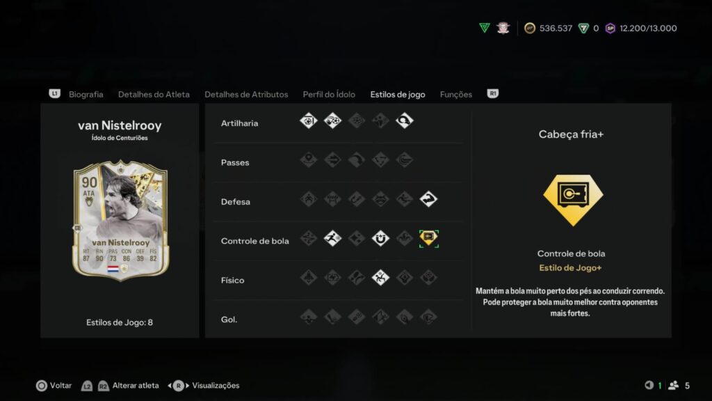 – Domínio: Com essa playstyle o jogador erra menos ao dominar a bola e faz transição para condução com mais rapidez.