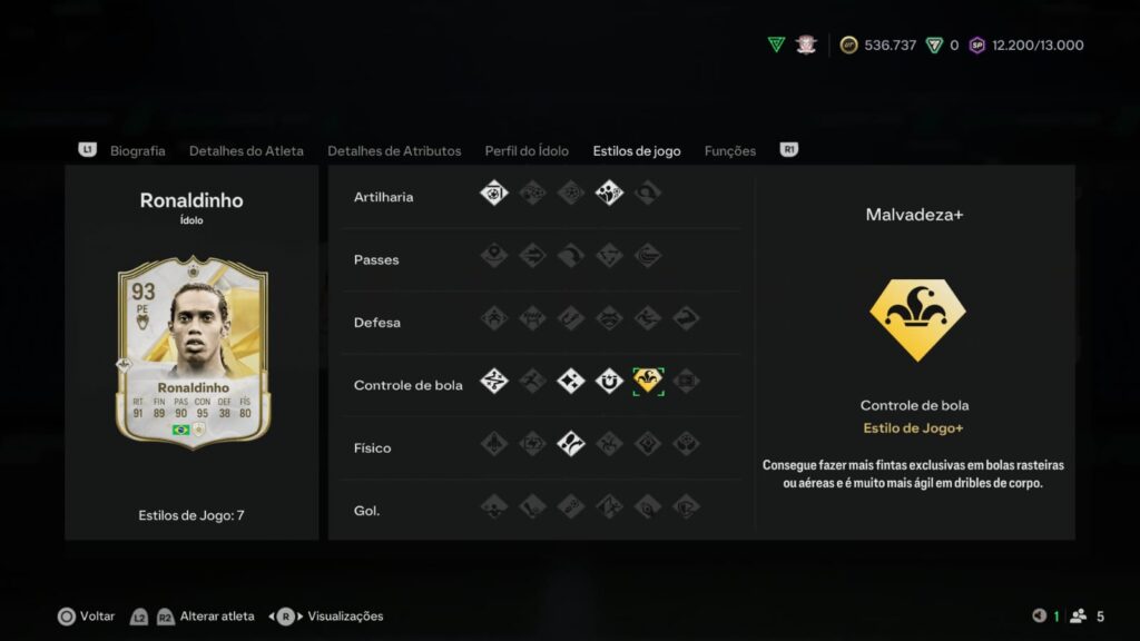 Seguindo o mesmo exemplo de Mia Hamm, aqui nosso Vini Malvadeza possui 7 playstyles.