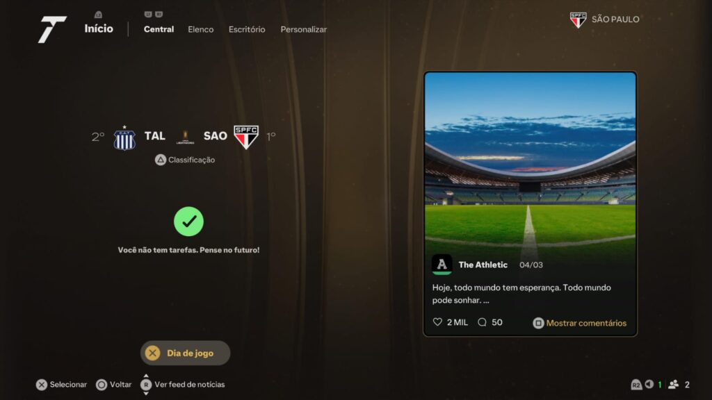 O São Paulo é conhecido por sua história gloriosa e por abrigar alguns dos maiores talentos do futebol brasileiro. No EA FC 25, o time se destaca por sua combinação de técnica e habilidade individual. Se você gosta de um estilo de jogo criativo, baseado em passes rápidos e dribles habilidosos, o São Paulo é o time ideal. Seu elenco é recheado de jogadores técnicos, capazes de desequilibrar uma partida com uma jogada individual ou um passe preciso. No EA FC 25, o São Paulo reflete essa característica de estilo de jogo refinado e ofensivo, sendo perfeito para quem busca um futebol mais técnico e estiloso. Sua capacidade de controlar a posse de bola e criar jogadas de ataque faz do São Paulo uma equipe ideal para os jogadores que gostam de construir a partida e manter a posse de bola.