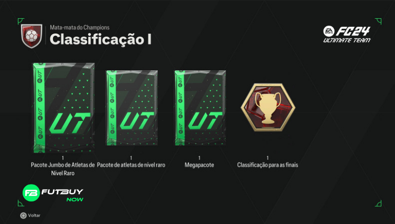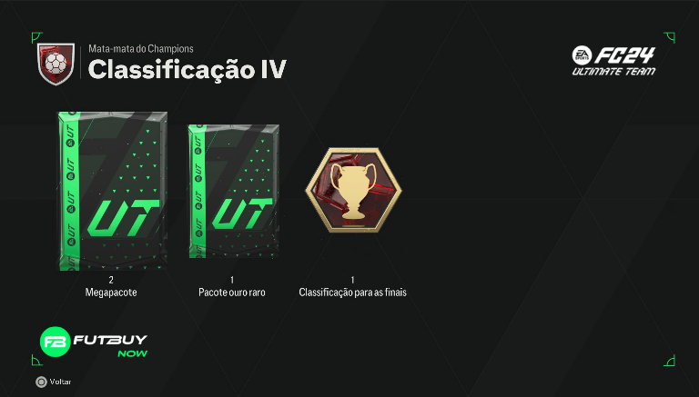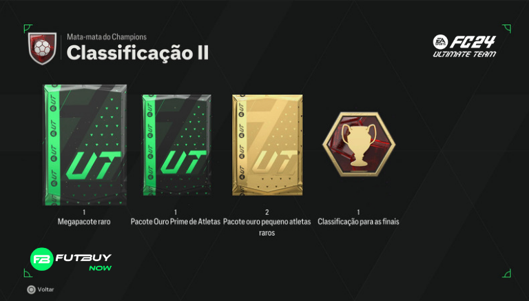 Classificação 2: x1 Mega Pack Raro, x1 Pacote de Jogadores Prime Gold, x2 Pacotes de Jogadores Pequenos Raros e Qualificação Final