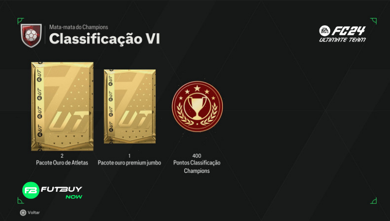 Classificação 6: x2 Pacotes de Jogadores Ouro, x1 Pacote Jumbo Premium Ouro e 400 Pontos de Qualificação de Campeões